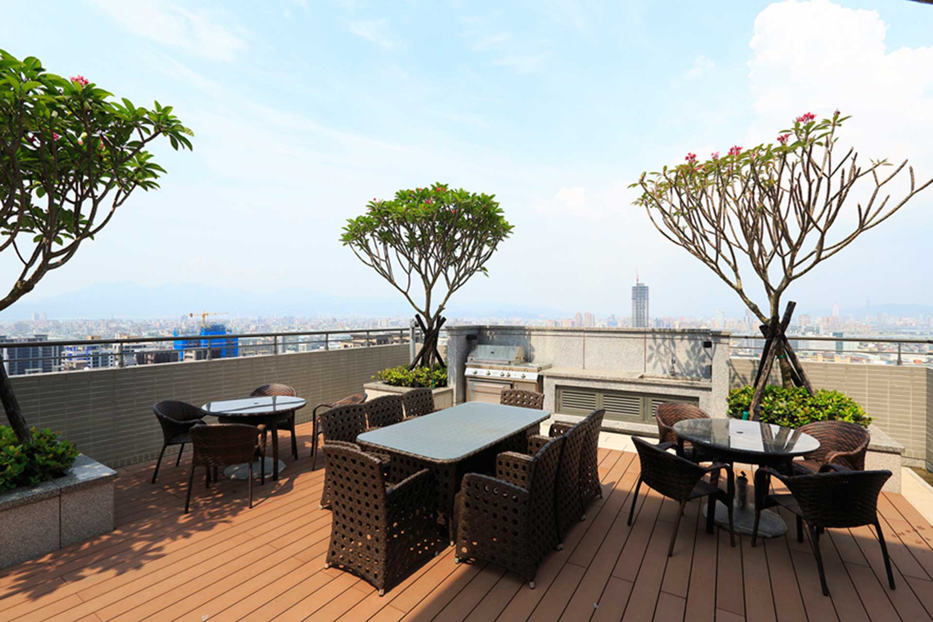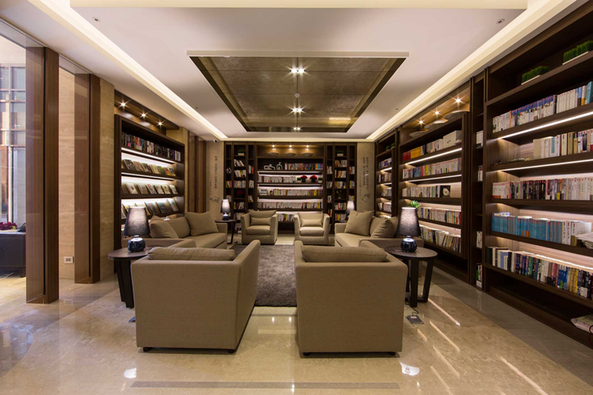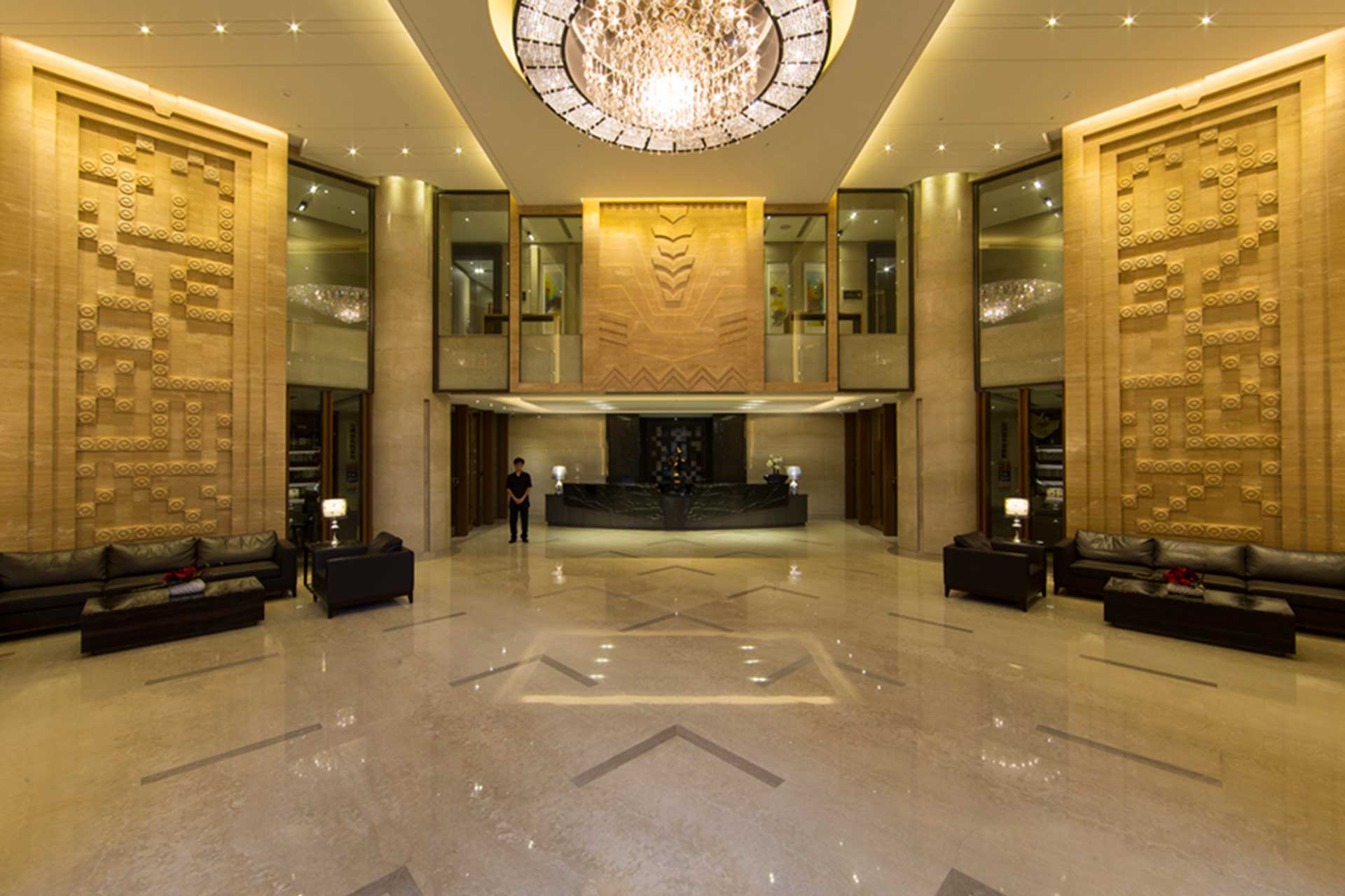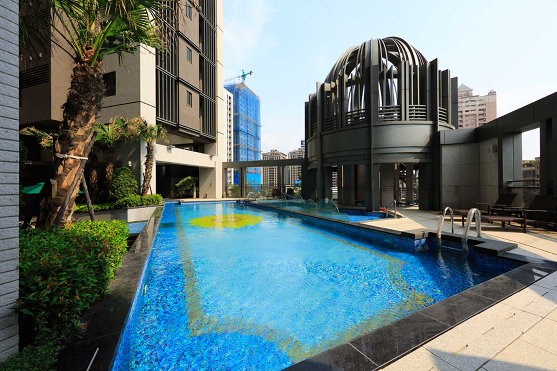 “Kindom Ding Feng” is divided into buildings A and B. Building A is adjacent to Siyuan Road and Building B is adjacent to Zhongyuan East Road. They are all single-storey with 3 households, 25 floors above the ground. On the 15th floor, there are air bridges and relay water tanks connecting Buildings A and B for escape safety requirements. A welcome hall with a height of 7.8 meters is planned on the 1st floor, audio-visual theatre and KTV are planned on the 2nd floor, an aerial swimming pool and an aerial Lounge Bar are planned on the 3rd floor, a fitness center is planned on the air bridge on the 15th floor, and a aerial leisure garden is arranged on the 25th floor on the top floor. On the first floor, the Kindom Global Views library and reading area are planned, and books are updated every month.