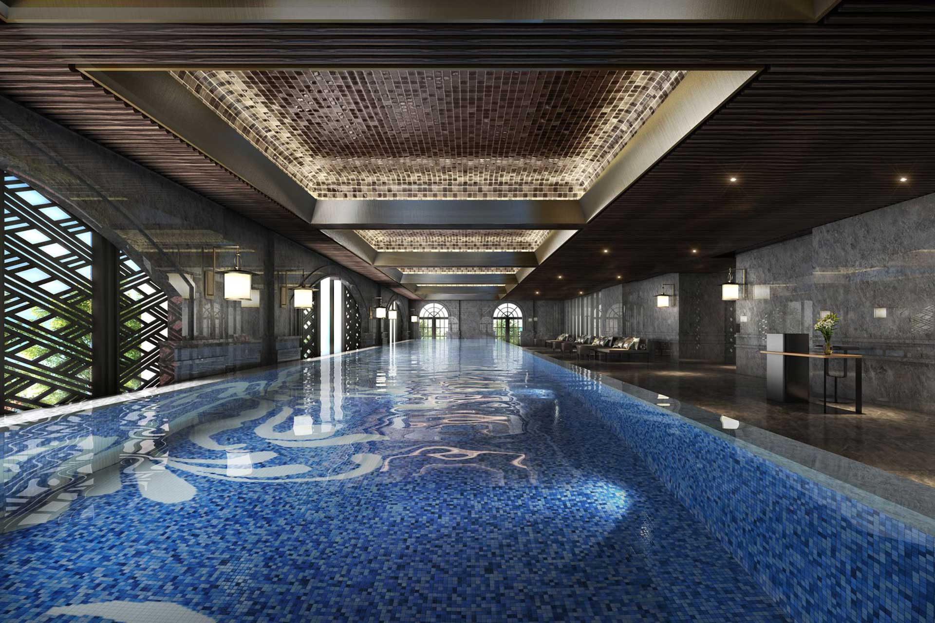 New York art mansion, heated swimming pool hall